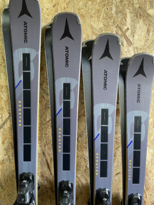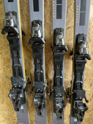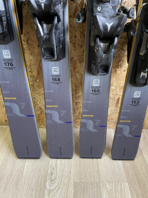 Narty w bardzo dobrym stanie, niektóre egzemplarze z fakryczną strukturą na ślizgach. Laminat z rysami pochodzącymi od normalnego użytkowania. Sprzęt przygotowany do sezonu.
