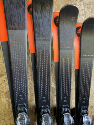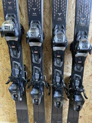 Narty w bardzo dobrej kondycji. Krawędź szeroka i pełna, ślizgi gładkie, większość egzemplarzy z nałożoną strukturą. Na laminacie rysy od normalnego użytkowania. Narty przygotowane do sezonu.
