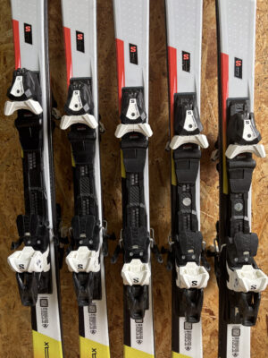 N alaminacie drobne ślady użytkowania, prezentują się bardzo dobrze. Krawędzie szerokie, ślizgi gładkie. Narty przygotowne do sezonu.
