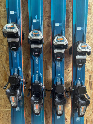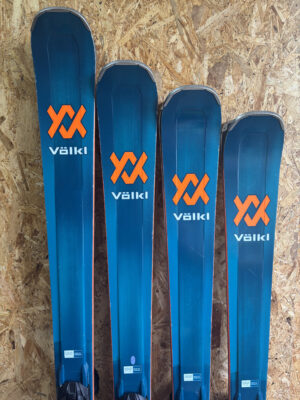 Stan techniczny nart jest bardzo dobry, krawędzie i ślizgi bez uszkodzeń. Na laminacie miejscami uszczerbek, niewielkie rysy od normalnego użytkowania. Przygotowane do sezonu.