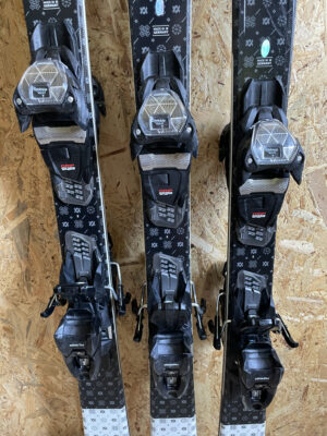 Narty przygotowane do sezonu, krawędzie pełne, bez uszkodzeń, ślizgi również. Na laminacie normalne ślady użytkowania.