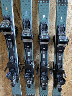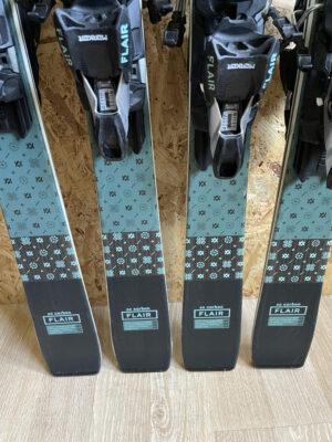 Stan nart co najmniej bardzo dobry. Krawędzie szerokie, ślizgi gładkie. Na laminacie drobne rysy pochodzące od normalnego użytkowania. Narty przygotowane do sezonu.