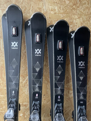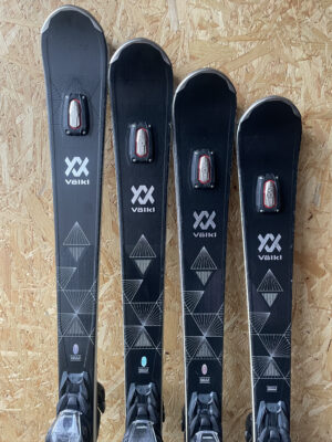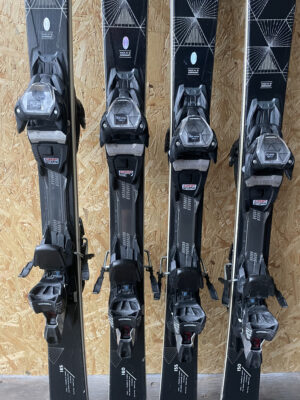 Narty w bardzo dobrym stanie technicznym. Wizualnie lekkie zarysowania na laminacie. Przygotowane do sezonu.