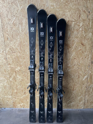 Narty w bardzo dobrym stanie technicznym. Wizualnie lekkie zarysowania na laminacie. Przygotowane do sezonu.